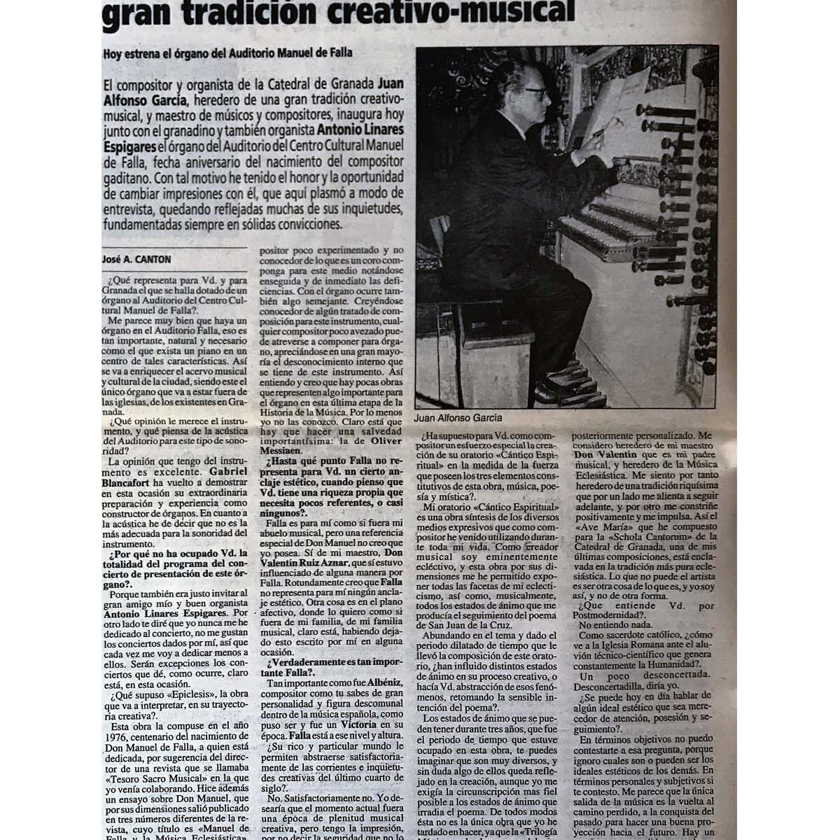 IDEAL DE GRANADA | 8/05/2008 | Juan Alfonso García, organista de la Catedral, Medalla de Honor del Festival